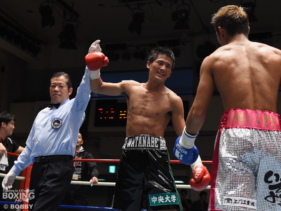 デビューからの連勝を4に伸ばした三代は「ダウンを奪った右フックはアップの時からキレていたパンチ。ダウンしたが、インターバル中にセコンドからジャブを突いて距離を戻せというアドバイスで立て直すことができた。強い選手に勝てたのはうれしい」と白い歯を見せた。来年1月13日に日本同級6位の正木脩也(帝拳)と決勝戦を争う三代は「ランカーに勝ってスーパーフェザー級戦線に割り込みたい」とさらなる飛躍を誓った。