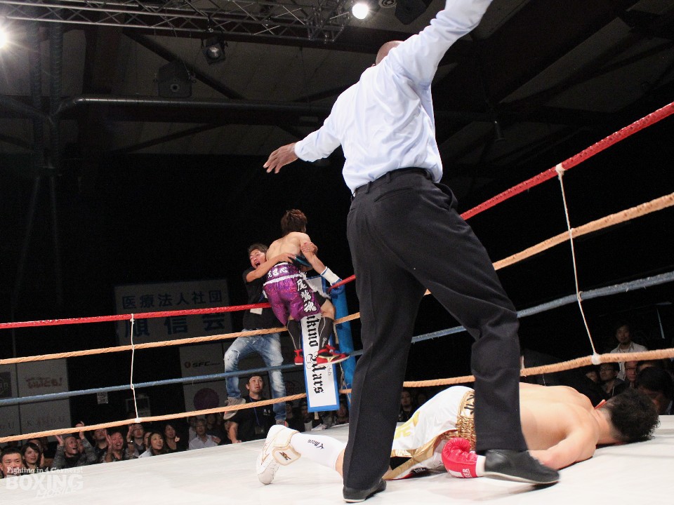 控室で安堵の表情を浮かべた遠藤は「デビュー戦でタイの選手にKO負けし、今回は負けられない気持ちと地元での試合ということでプレッシャーはかなりあった。相手の動きを落ち着いて見ることができた。ガードが空いているところを打ち込んだ」。「デビュー戦の結果は消えないがここからがスタート。今回の試合の反省を踏まえて来年はA級に上がり、タイトルを狙える位置まで自分を高めていきたい」と喜びに浸った。