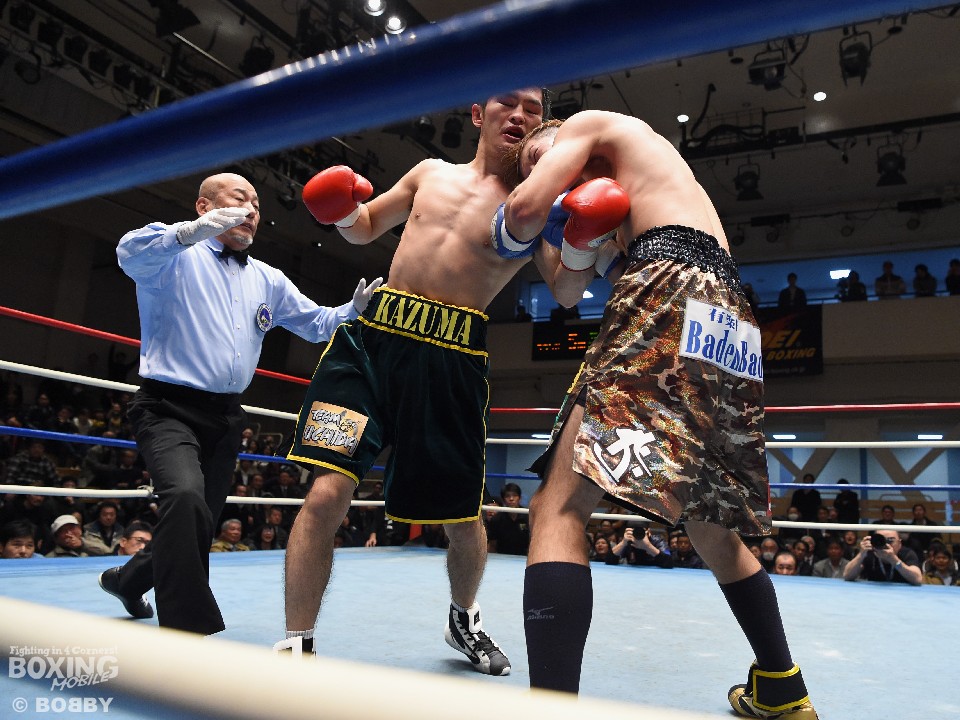 ペースを取られた三瓶は2回、距離を詰めるが石井のワンツー、左アッパーを浴びるとラウンド終盤に左ストレートをカウンタでもらいダウンを喫した。ピンチを迎えた三瓶だったが、3回からボディを叩き体力を削ると、4回に連打でダウンを奪い返した。5回、石井はコンビネーションを決めるが、三瓶の前進を止めることができず。勢いに乗った三瓶はボディへ連打を打ち込み2度目のダウンを奪うと立ち上がったところをパンチをまとめてフィニッシュに持ち込んだ。三瓶が逆転TKO勝ちでユースタイトル初防衛をはたした。