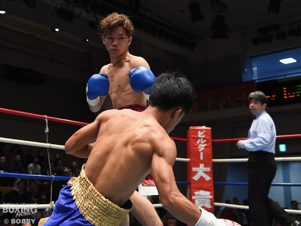 稲元純平(19=熊谷コサカ)はバンタム級6回戦に出場し、デングッチュム・シットソートーゴー(21=タイ)と対戦。稲元はフットワークを駆使しプレスをかけると右フックを振り抜きダウンを奪った。立ち上がったデングッチュムに再び右を浴びせて試合を終わらせた。