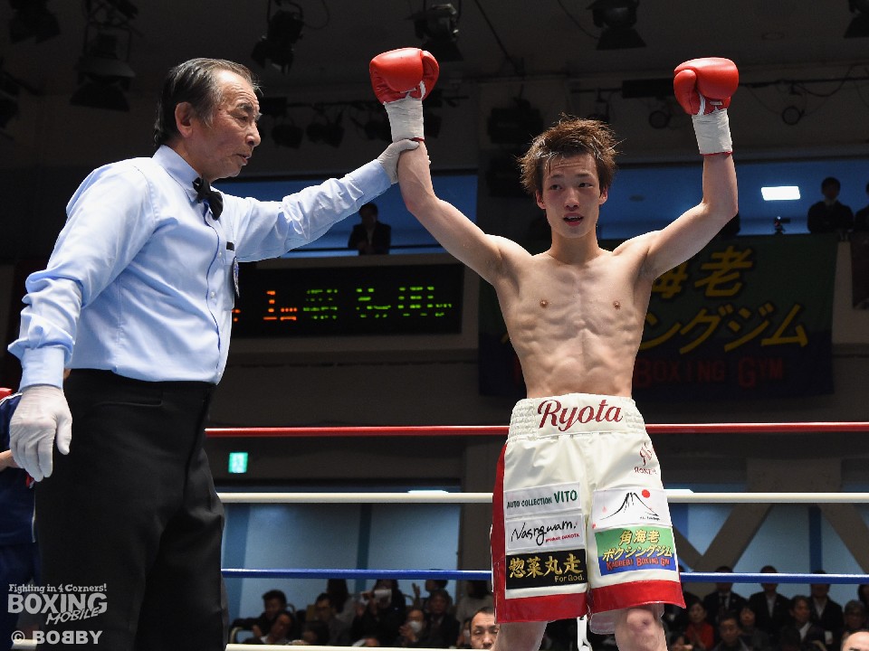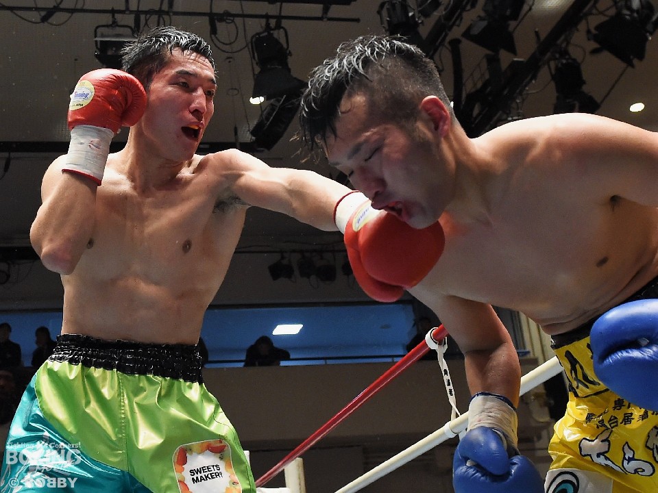 今野はウェルター級8回戦で日本ウェルター級9位の丸木和也(天熊丸木)とのランカー対決。初回から今野がプレスをかけて攻勢を仕掛け、左フックで腰を沈めるとロープに詰めてダメージを与えた。4回、今野は左ボディで相手をくの字にすると、続く回にロープに詰めて連打でストップに持ち込んだ。