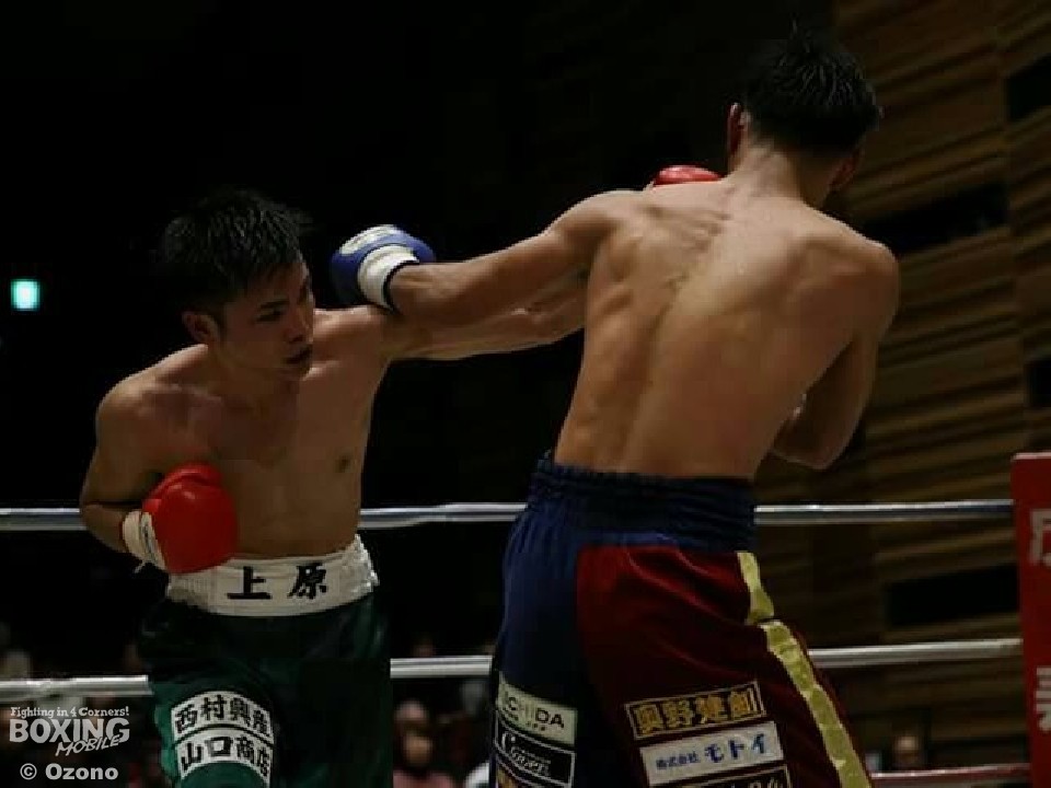 試合は、思い切りのいい山本の右をもらった上原が、左のストレートとフックでペースをつかんでポイントアウトした。