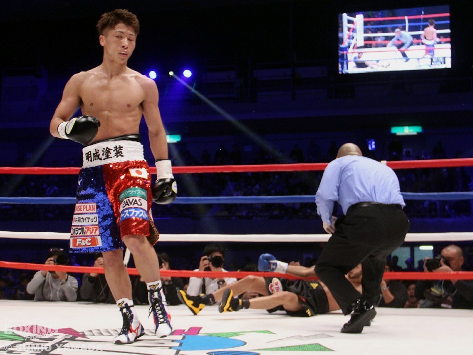 初回は距離を掴むために様子を見たというV7チャンピオンだが、「早く掴めた」と長身相手のボクシングにも直ぐに順応できたことを明かすと、初回に奪った手ごたえ抜群だったという左フックに関して「自然と出た」と笑顔を見せた。