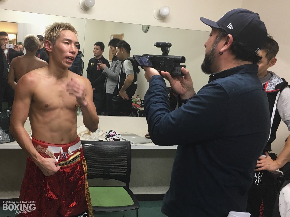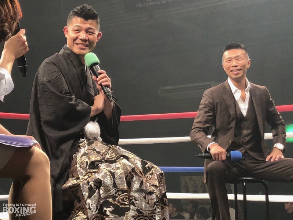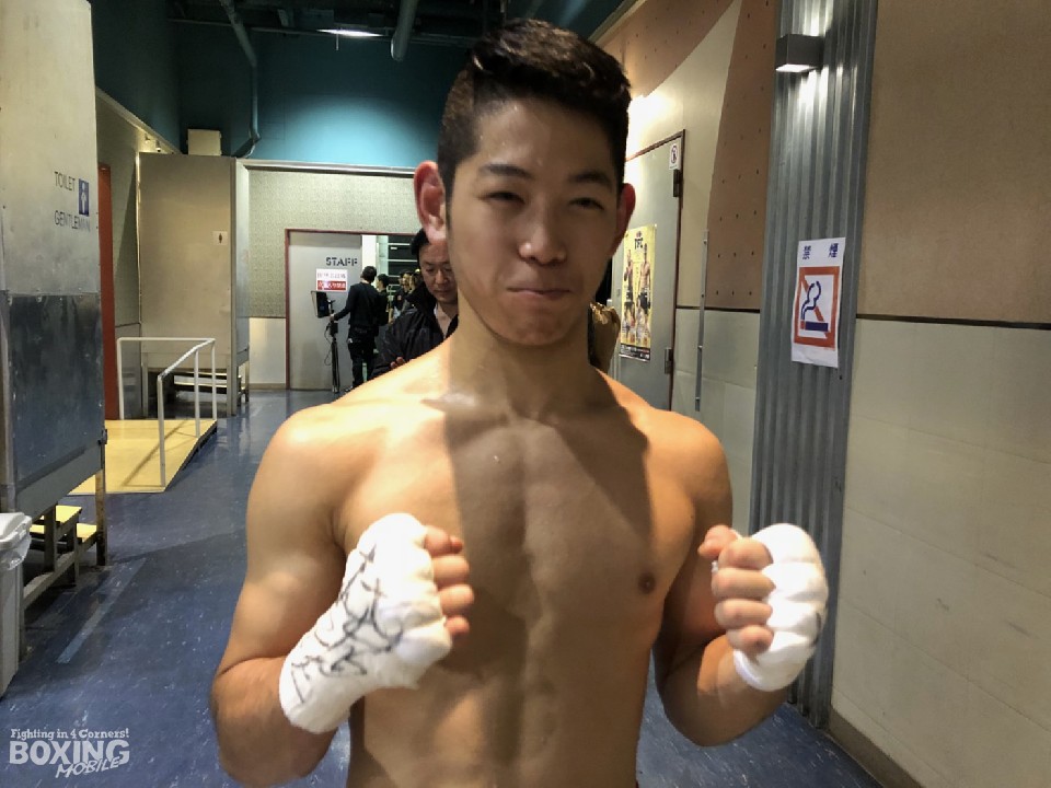 一方、青コーナーからリングインした木元紳之輔(ワタナベ)は試合後、「(パンチが)硬くて痛かったです。相当パンチが強いですね」と京之介の印象を語った。