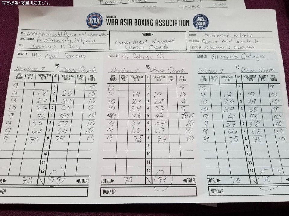 フィリピンのマニラでWBA女子アジアライトフライ級王座決定戦に出場した緒方汐音(寝屋川石田)が12日、激闘の末、判定でベルト奪取に成功したことがわかった。前半から積極的に出た緒方は終始落ち着いた試合運びを見せ3-0の判定で初タイトルを獲得。また、アンダーカードに出場した日本スーパーフェザー級7位の中谷有利(グリーンツダ)は1ラウンドKO負け、那須亮佑(グリーンツダ)は判定負けを喫し共に初の海外遠征は苦い経験となった。