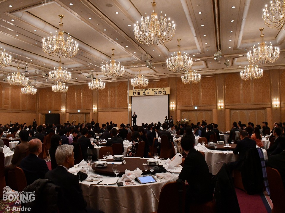 WBC女子世界フライ級暫定チャンピオンの好川菜々(堺東ミツキ)が12日、堺市内のホテルで後援会とファン総勢320人が集まった祝勝会に招かれた。好川は昨年12月16日(土)、メキシコのメヒコ州で元メキシコライトフライ級王者のデリア・ロペスと暫定王座決定10回戦で拳を交え、判定勝ちで世界王者返り咲きを果たした。
