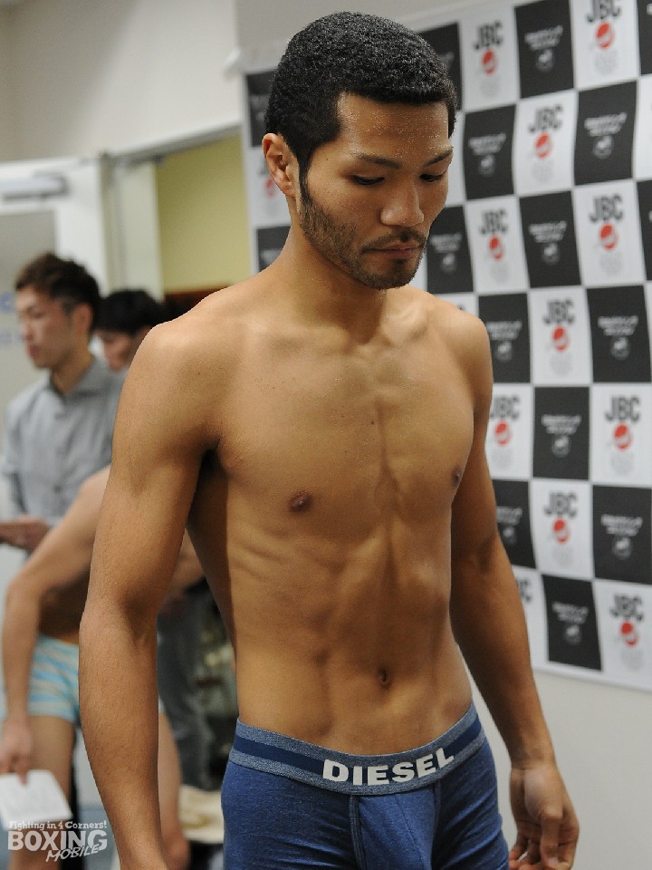 昨年8月に日本ユース・スーパーフライ級王座を獲得、一気に日本上位に躍り出た新鋭の山下賢哉(21=白井・具志堅スポーツ)と、昨年7月にOPBF東洋太平洋同級王座戦に敗れ、タイトル戦線から後退した日本同級6位の木村隼人(28=ワタナベ)によるランカー対決が明日26日に後楽園ホールで行われる。その前日計量が都内の日本ボクシングコミッション本部事務局で行われ、山下がリミットの52.1kgを一発でクリアしたのに対し、木村は200gオーバー。すると、ガクッと肩を落とした木村に山下がすかさず先制パンチをくらわした。