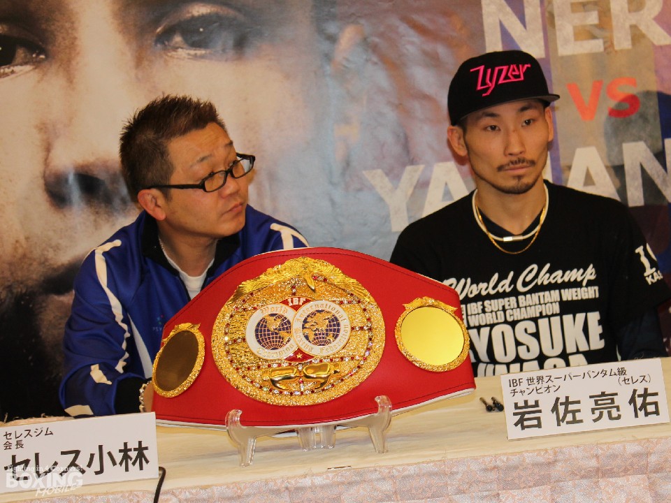 本日は岩佐とコンビを組む小林昭司会長の45歳の誕生日であることが知らされた。何か用意しているのかという質問に「ノープランです!」と返し報道陣を笑いを誘った岩佐。「僕が中学生の時から二人三脚でやってきてお互いに歳を取ったなと思う。明後日の勝利を会長にプレゼントしたい。勝ってから何を送るか考える」と話した。小林会長は「勝ってもらうのがなによりのプレゼント。最善のサポートをしたい」と鬼門の初防衛戦をクリアしたいとコメントした。