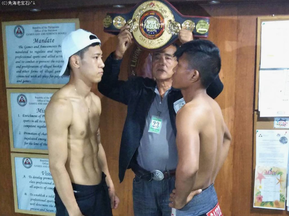 日本スーパーバンタム級1位の中川麦茶(29=角海老宝石)は明日19日、フィリピン・マニラ市内でWBA(世界ボクシング協会)アジアイースト同級王座決定10回戦に挑む。その前日計量が現地で行われ、中川がリミットの55.3sを一発でクリアしたのに対し、相手のリッキー・マヌフォー(30=インドネシア)は一回目の計量で450gオーバーした。