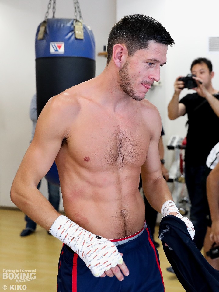 マクドネルの練習を見た井上真吾トレーナーは「シャドーボクシングだけを見ると基本に忠実な正統派。身長の高さは映像で見た通り。戦ってみないと分からないが、ナオのスピードについてこれないと思う。初回の攻防が楽しみですね」と感想を口にした。しかし、軽く練習を終えたことに関しては「これからホテルに戻って練習するのか。ジムに戻って練習するのか。体重がしっかり落ちているのか気になるところです」と話した。