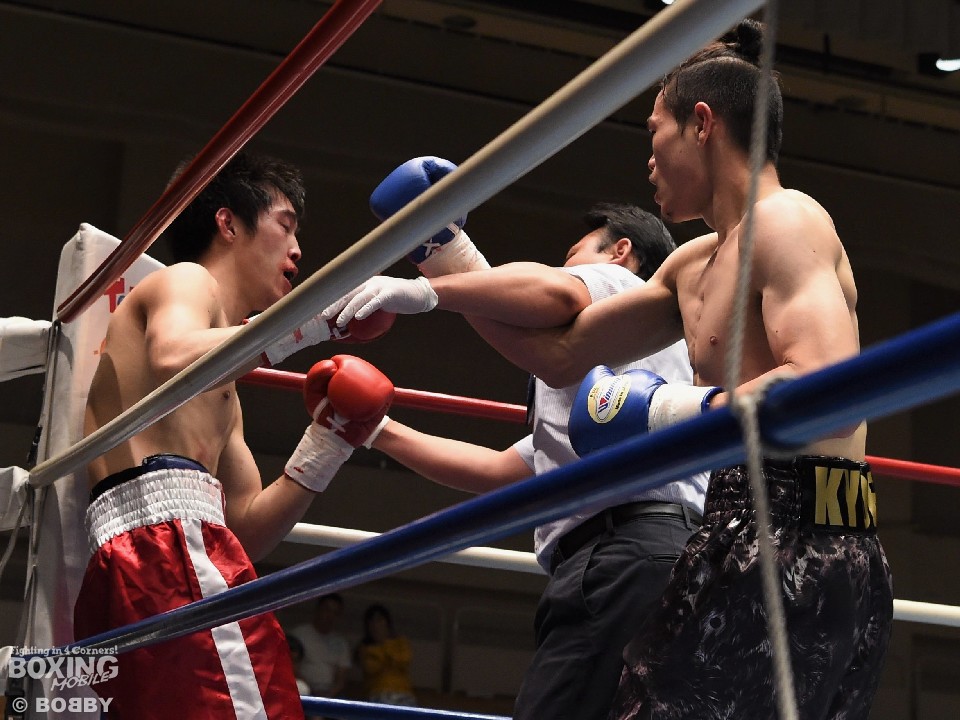 第11試合ライト級4回戦では生井航平(21=ワールド日立)と橘ジョージ(22=協栄)が対戦。初回にサウスポー生井の左フックでダウンを喫した橘だったが、プレスをかけてボディを叩き体力を削っていくと、2回にロープに追い込んで連打でストップ勝ちした。