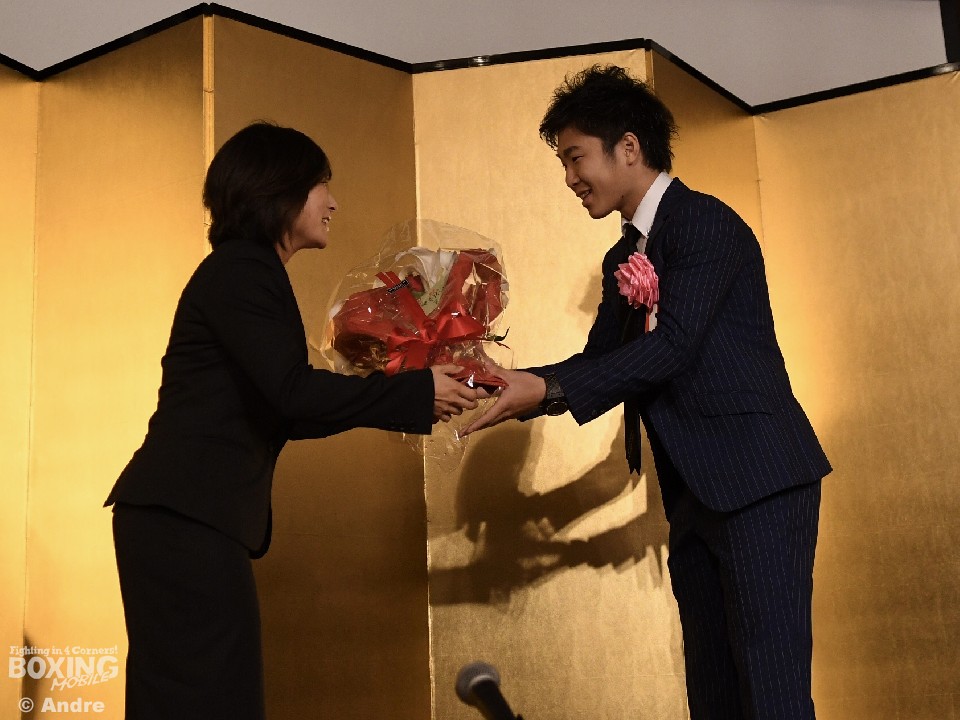 壇上で拳四朗は「祝勝会をやっていただけることはありがたいです。もっと、防衛を重ねていって、もっと大きな会場で大勢の方々と祝勝会ができるように頑張ります」と笑顔を見せた。