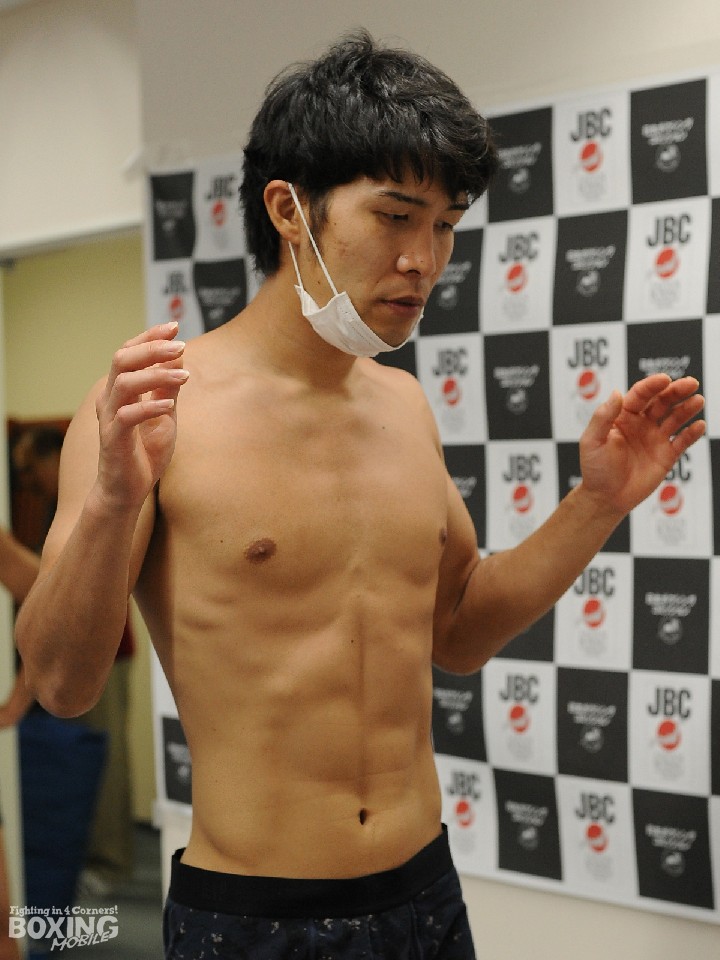 昨年この階級で日本王座に挑戦したプロ8年目の今野は、今回が再起2戦目。リミットの63.5sを100g下回り計量を終えると、コンディションの良さをアピールしながら稲垣について「ゴリゴリのファイターだけに巻き込まれないよう注意したい」と話し、その上で「メインを張るからには華のある試合を見せたい。東洋太平洋、WBOアジアパシフィックにも入れるよう結果を残したい」と拳を握った。