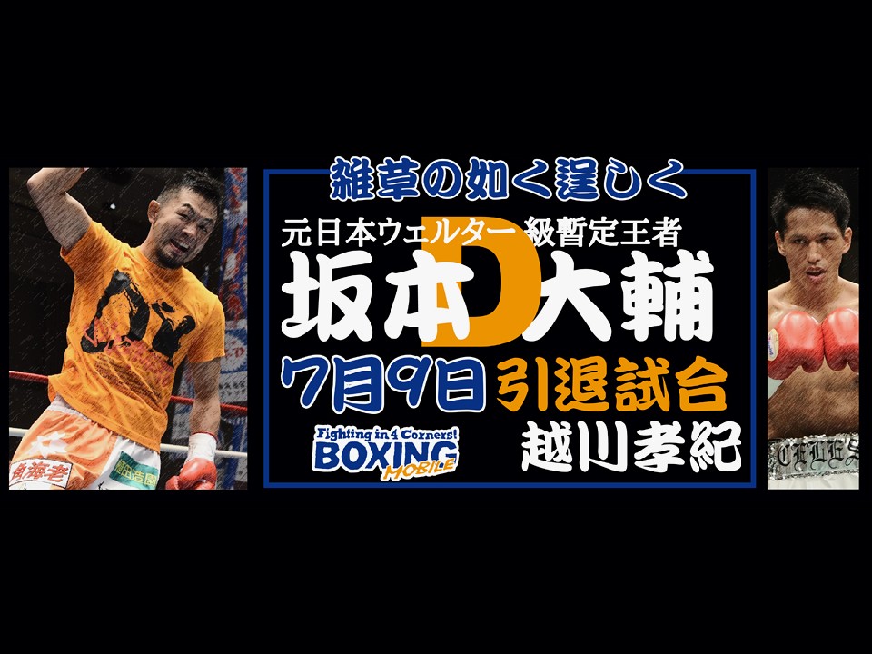 そしてもう一人、明日の9日(月)、後楽園ホールでその物語に終止符を打つ日本ウェルター級選手がいる。本日の計量をスーパーウェルター級リミットのパスした元日本ウェルター級暫定王者の坂本大輔(36=角海老宝石)だ。習志野高校、拓殖大学とエリートコースを歩みながら、お笑い芸人を目指した異色の経歴を持つ。故意では決してなかった事件を乗り越え、暫定日本王者となった。挫折と復活を繰り返した異色のボクサーは、同じ習志野高校の逞しき後輩、日本同級15位の越川孝紀(26=セレス)と現役最後の試合を迎える。興行主体の海外ではあまり見ることのない選手のための引退試合は、引退式とともに日本が世界に誇れる美しきボクシングへの心のあり方といえるのかもしれない。「雑草の如く逞しく」習志野魂が明日、熱き戦いを呼び起こす。