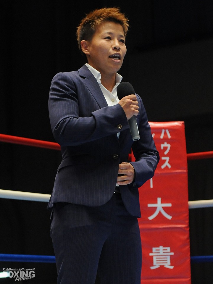 これに花形は「可愛い選手には負けたくない!」と黒木を横目に闘志をたぎらせ、「これまで4度も世界挑戦に失敗しているのに、5度目のチャンスを頂きました。次こそは必ず世界チャンピオンになります」と誓った。