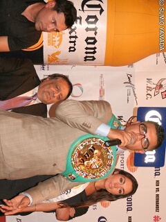この日はゴールデンボーイ・プロモーションズの主宰者オスカー・デラ・ホーヤと、2週間前の4月16日にアンドレ・ベルトを破ってWBC世界ウェルター級新王者となったビクター・オルティス(米)も姿を現した。オルティスにはホセ・スライマンWBC会長からチャンピオン・ベルトが贈呈された。