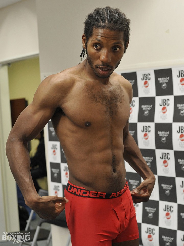 一方、沖縄から参戦したスミスは1回目の計量で100gオーバーしたが、2回目でリミットちょうどでクリアした。昨年の全日本同級新人王のスミスは、上位ランカーが出場を辞退する中、井上撃破に名乗りを挙げた。スミスは「明日は倒すか倒されるかの試合になる。勝ってチャンピオンに挑戦する」と気を吐いた。