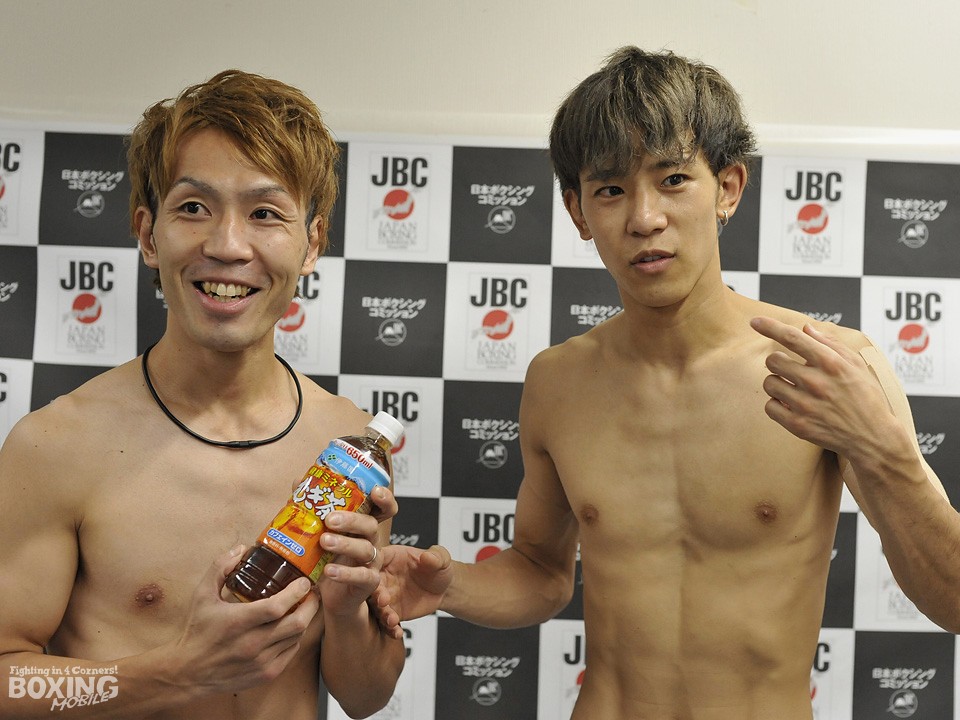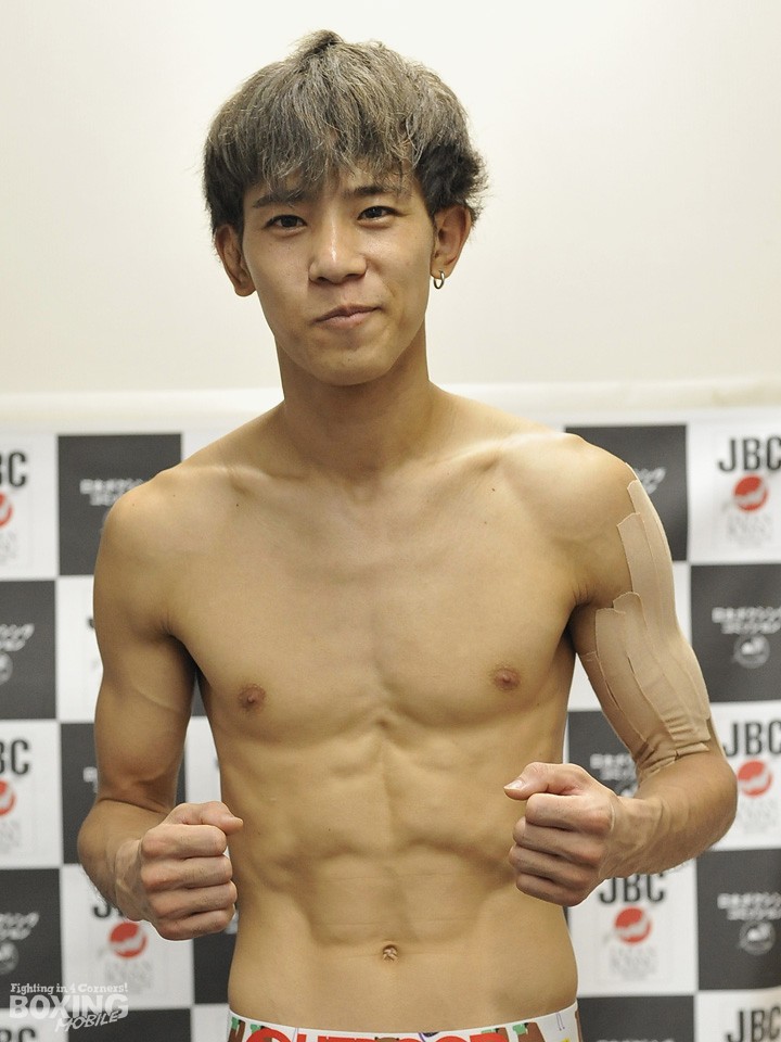 対し、昨年7月に階級を上げると10月に日本・OPBFランカーの渡部大介(ワタナベ)を衝撃の初回KOで葬り一気に浮上。今年2月には現日本バンタム級王者の齊藤裕太(花形)を判定で破りブレイクした2位の岡本。この勢いで来年のタイトル挑戦に弾みをつけたい苦労人は、100gアンダーの55.2kgでパスすると「相手の上手さにごまかされないよう、自分のボクシングを貫き通す。初回から行きますよ。明日になったらどっちが強いか分かる」と拳を握った。