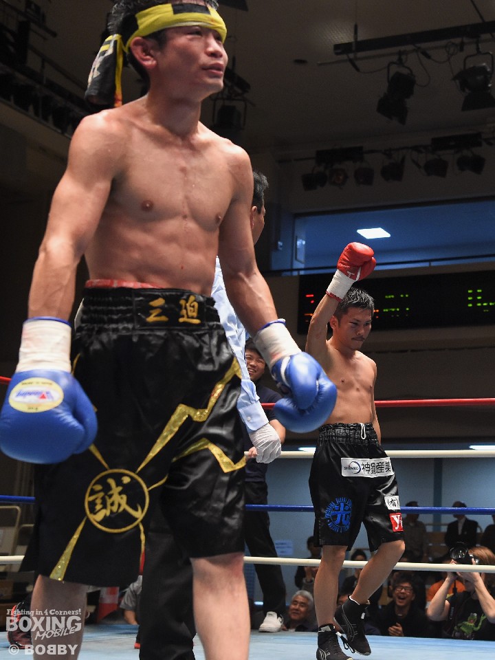 倒された望月だが、2回に右フックで腰を沈めさせ反撃。中盤は藤北が左フック、右ストレートで攻め立てるが、望月は強気に飛び込んで猛追。採点の難しい展開が続き試合終了のゴングを聞いた。ジャッジ2者の支持を得た望月がランカー対決を制した。