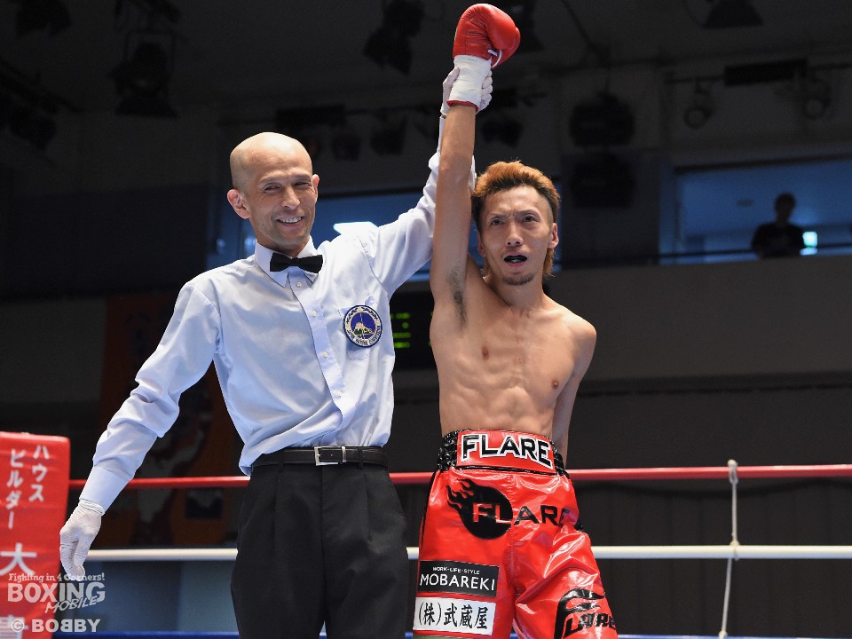 2回に右ストレートでダウンを奪うと、連打でストップに持ち込んだ馬場は、「右カウンターを狙い距離を意識した。ただ、少し手数が少なかったですね」と笑顔を見せた。