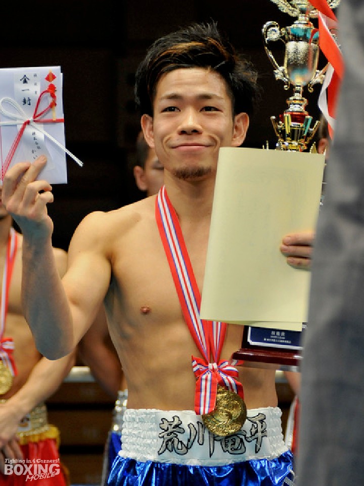 4月の対戦では2回TKOで敗れた荒川だがリベンジを果たした。「ダウンを奪ったが、5ラウンド戦うつもりでじっくり攻めた。相手の気持ちが強かったので、距離をしっかり取って戦うことを心掛けた。昨年は決勝戦で負けて表彰式の時にリングサイドで涙を流していたので、この山を越えることができて本当にうれしい。自分のスタイルを貫き次も勝ちたい」と喜びに浸った。