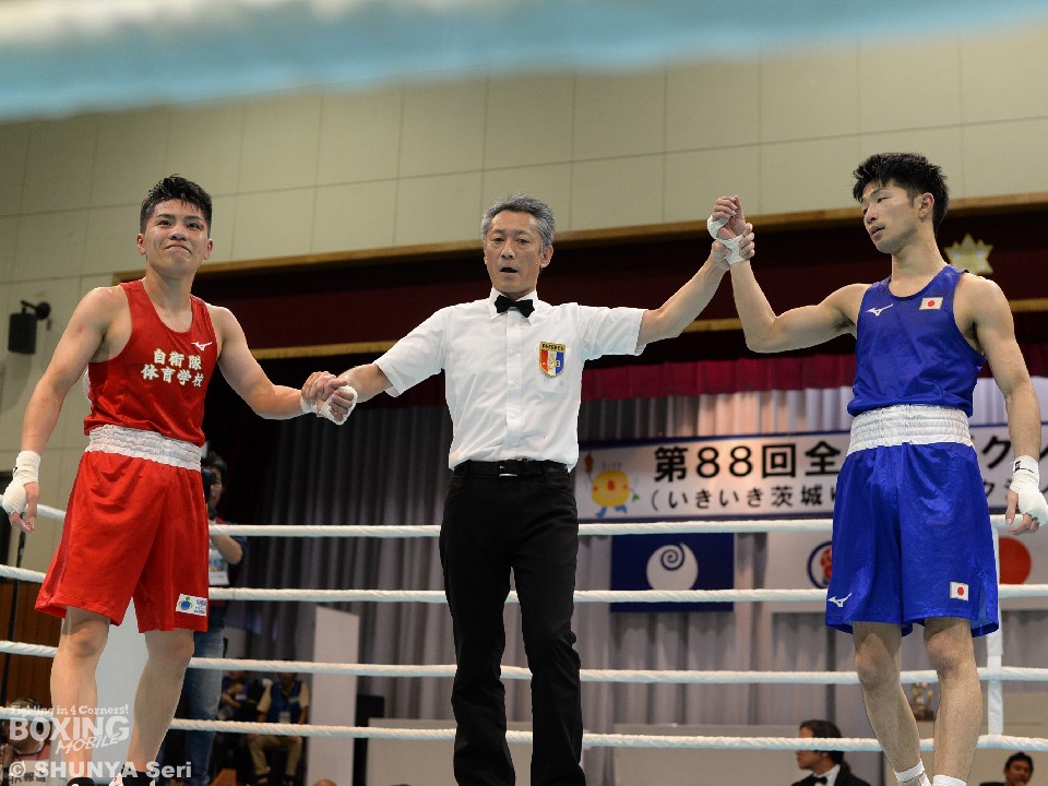 茨城・城里町の水戸桜ノ牧高等学校・常北校では、来年開かれる『いきいき茨城ゆめ国体』のリハーサルを兼ね、第88回全日本選手権が行われており、今日は準決勝戦が行われた。今月初め、この競技を統括するAIBA(国際ボクシング協会)は、男女平等化に伴った男子の新階級を52kg、57kg、63kg、69kg、75kg、81kg、91kg、91kg超と正式発表したが、それ以前の噂段階から、2020年東京五輪を意識して、選手たちは新階級を想定してきた。