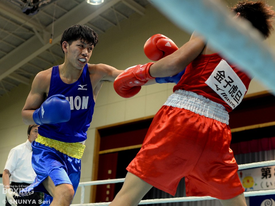 これまでライトフライ級(49kg)で日本のトップと国際大会への切符を争ってきた坪井智也(自衛隊体育学校)と柏崎刀翔(福井県連盟)は、そろってフライ級(52kg)に転向。柏崎は馬場龍成(自衛隊体育学校)を破った伏兵の坂本達也(近畿大)に勝って決勝に進むが、坪井はプロ世界王座3階級制覇者の田中恒成を弟に持つ田中亮明(中京高校・教)に僅差で敗れた。