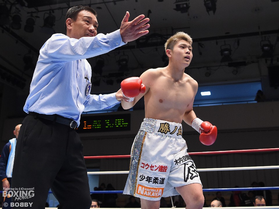 初回から両者ともキレのあるパンチを繰り出しスリリングな打ち合いを展開。しかし、パワーで勝る佐々木が左フックを決めて膝を揺らすと、連打から右をフォローしダウンを演出。立ち上がった津本だが、ダメージが深くレフェリーが試合をストップした。