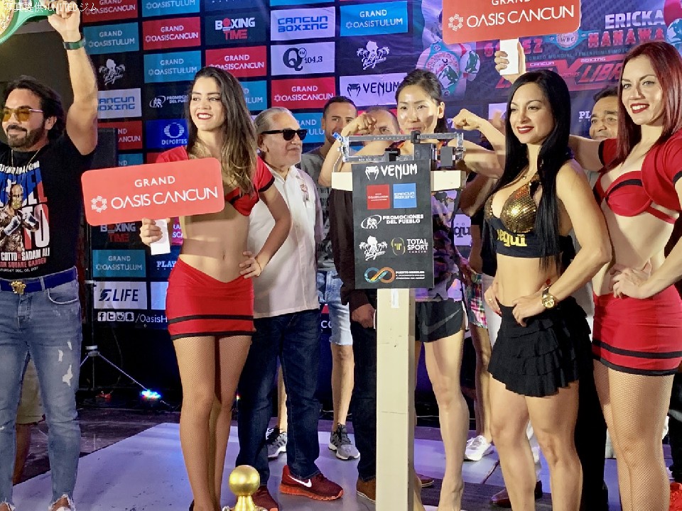 WBC(世界ボクシング評議会)女子ライトフライ級タイトルマッチの前日計量が16日(日本時間17日)にメキシコ・カンクンで行われ、王者のイセニア・ゴメス(メキシコ)とOPBF東洋太平洋女子ミニフライ級王者の塙英理加(UNITED)が計量に臨んだ。