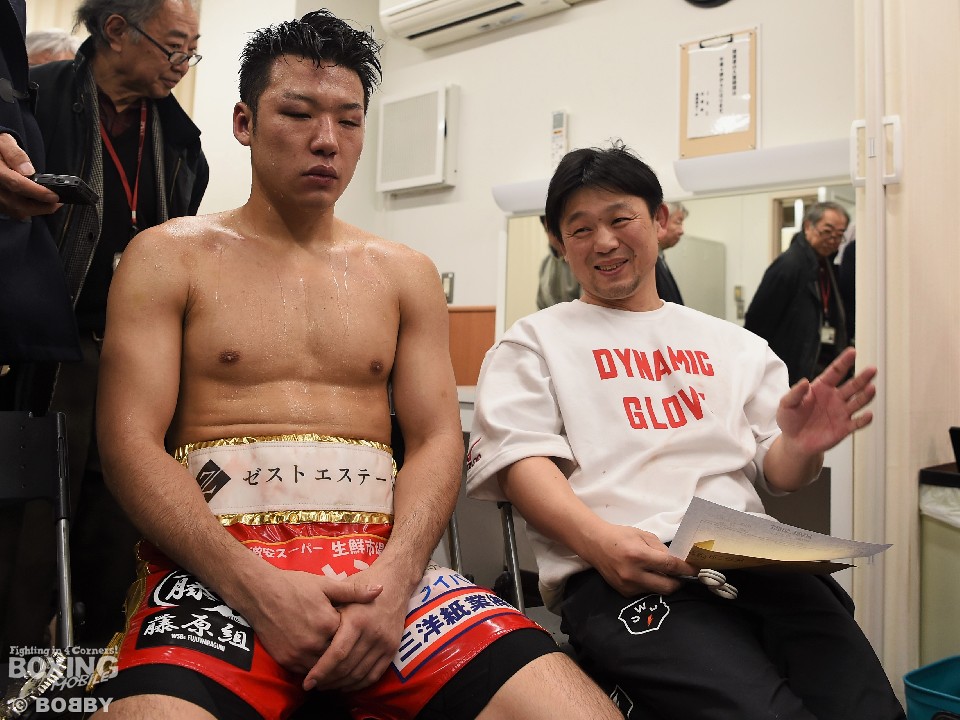 会見に同席した藤原俊志トレーナーは、「後半は焦らず、細かく打っていったらチャンスはいつかくると指示した。右がコツコツ当たっていたので、もっと早い段階でできれば良かった。思ったより手数が出たのにはビックリした。ボディ打ちを警戒されて打ちずらそうだった」とコメントした。