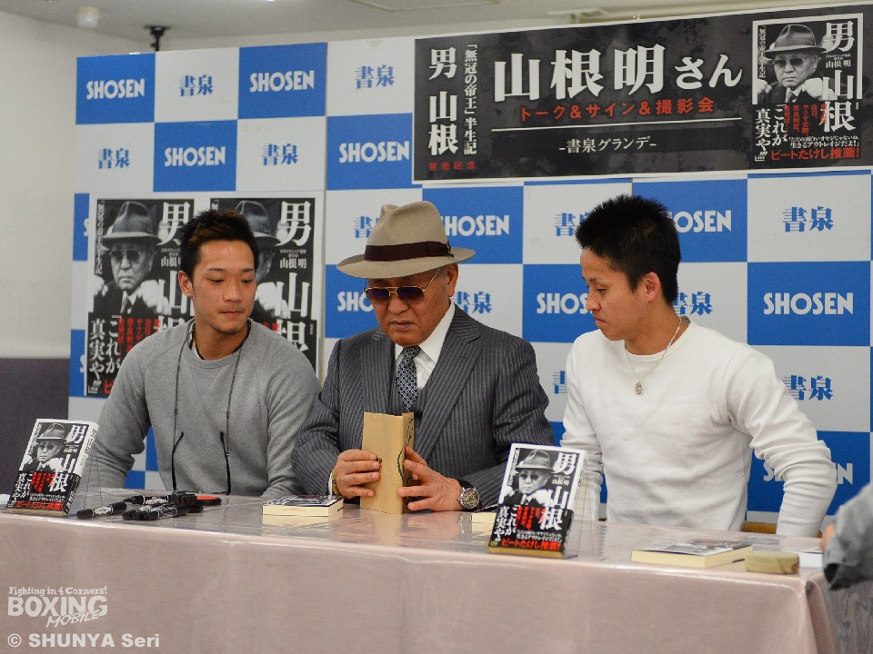 イベント開始前には、7階の会場に向け、3階下まで階段に行列がつくられ、山根氏はいざトークで半生を振り返り始めると、いきなり涙を見せる場面もあった。感極まった理由の一つは「誰が来るんやろうと思いながら大阪で新幹線に乗ったから」とのことだが、実際には参加券が完売。また、今まで「兄弟分」とも言ってきたウズベキスタンのガフール・ラヒモフ氏がAIBA(国際ボクシング協会)の会長から退く意向を示した報道については「疑惑はあるかもしれないが、心底からボクシングが好きな人でもあるのはたしか」と同情の言葉も口にした。