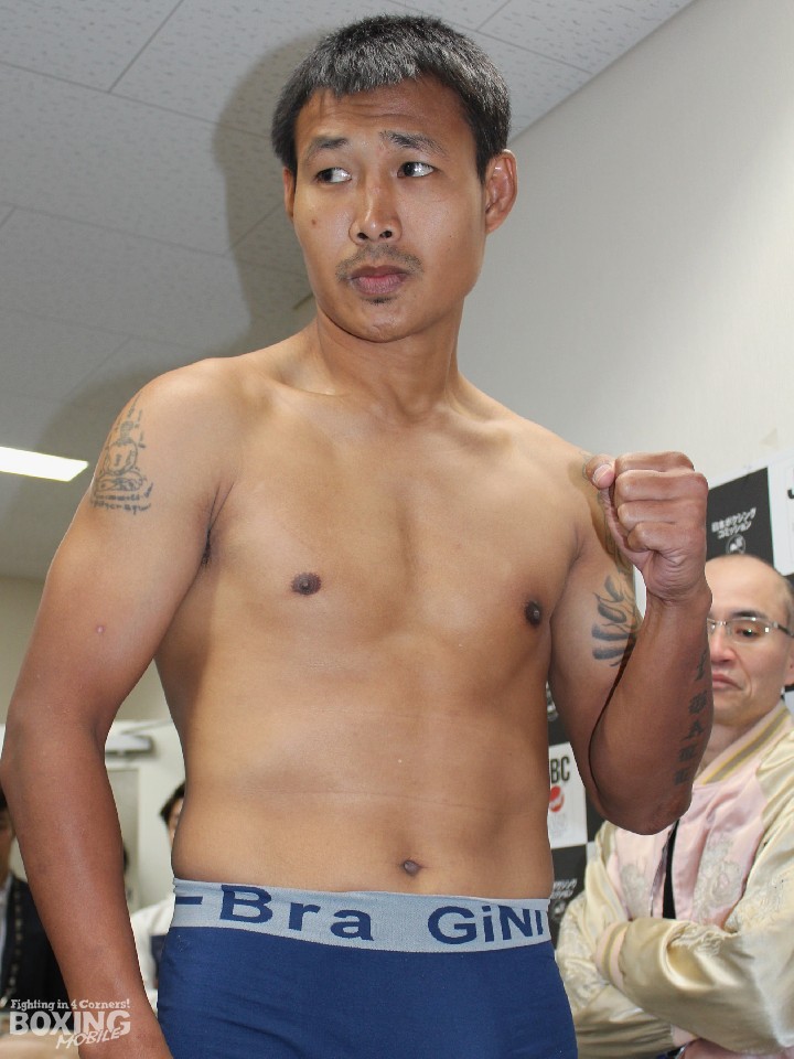一方、これが2度目の来日のムアンポンはリミットちょうどの74.0kgで秤を降りると、「1〜2ラウンドは様子を見て仕掛けていきたい。相手は身長が高いのでボディを狙っていく」と静かに闘志を燃やした。ムアンポンは昨年6月に現日本ミドル級王者の竹迫司登(ワールドスポーツ)とノンタイトル戦で対戦し、7回TKOで敗れているが強打を浴びながらも前に出てガッツを見せた。太尊がタフなタイ人をどのように仕留めるのか興味深い。