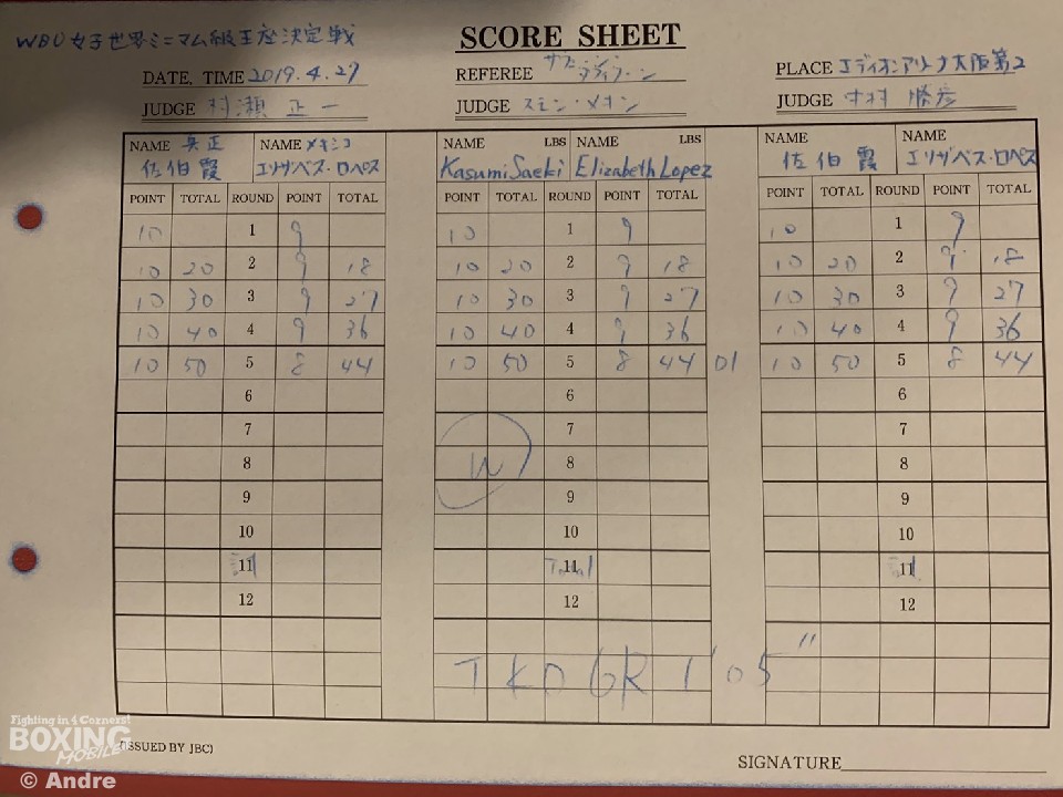 WBO(世界ボクシング機構)女子ミニマム級王座決定戦が27日(土)にエディオンアリーナ大阪(大阪府立体育会館・第2競技場)で開催された「REAL SPRITS.63」のメインイベントで行われ、WBOアジアパシフィック女子ミニフライ級王者の佐伯霞(真正)とエリザベス・ロペス(メキシコ)が空位の王座を争った。数々の名勝負が生まれたエディオンアリーナ大阪で、平成最後の世界戦に出場した佐伯の動きに注目が集まった。