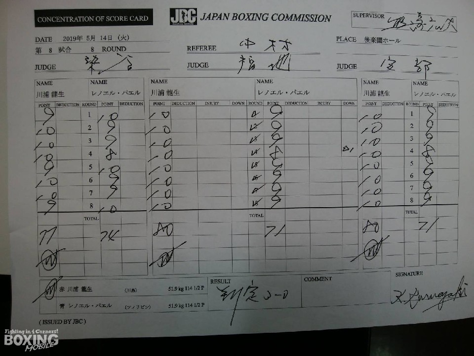 一方、最後までしつこく戦い抜いたパエルは、「最初のダウン以降は耐えることが出来たが、カワウラは強く速かった」と川浦を称え、「これまで日本で4戦したが、また呼んでくれるのなら来たい。日本でタイトルにも挑戦したい」と希望した。