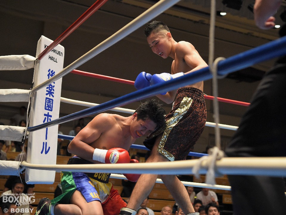 テンポの良い攻撃で攻め込む成塚に対し、藤北は打ち終わりに左フック、右ストレートで対抗。その後も一進一退の攻防が続いたが、3回に成塚が偶然のバッティングで額を負傷し、4回終了時に陣営が棄権の意思を示した。