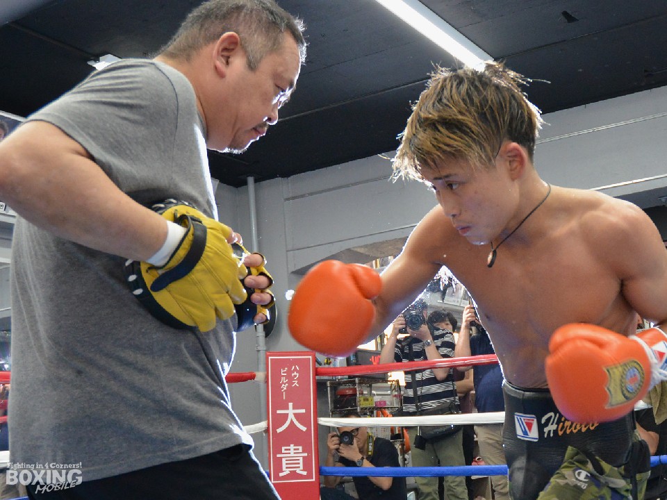 練習では、シャドーで汗を流したあとに、同門で元OPBFフライ級王者のサウスポー中山佳祐(30)と2ラウンドのスパーリングを披露。59キロ近くあるという中山にも当たり負けせず、中間距離から右ストレート、詰めてはしゃがみ込んだ状態からアッパーを突き上げるなど圧倒。京口の最大の武器である階級を超えた爆発力に加え、攻撃のバリエーションが明らかに増えていた。