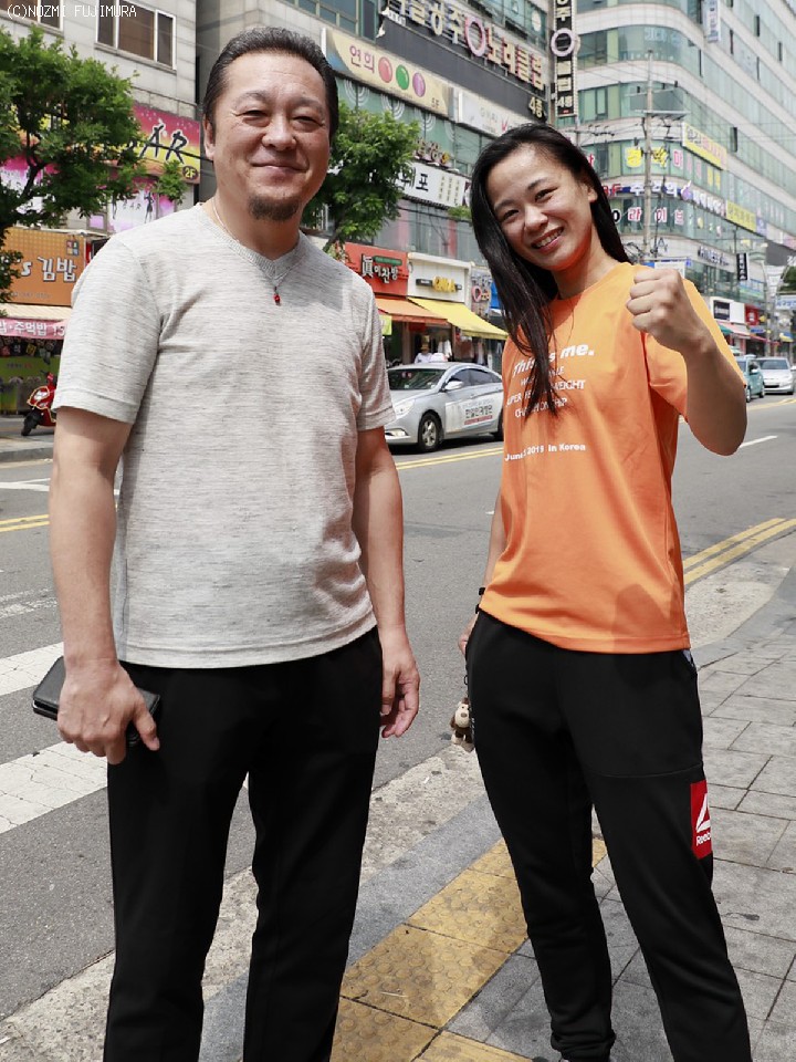 終始リラックスし笑顔が絶えなかった王者に対し、世界初挑戦の藤原は「いつもと同じで緊張している。早く試合を終えたいです」と消極的なコメント。それでも「初めての海外が初めての世界戦なのでなんだか嬉しい。緊張気味な方が気が反れて逆にいいかも」と前向きに捉え、対面したチェについては「素直に美人なおねえさん」とその印象を語った。