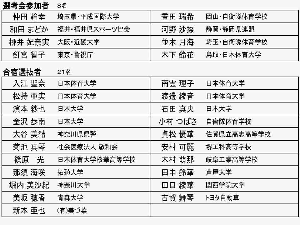 代表選考会・強化合宿の参加選手