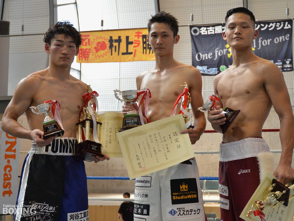 大会終了後、3賞が発表され、市野ジム中村3兄弟の次男・中村淳希がMVPに輝いた。中村は今年4月にも対戦した小坂大地(ARITOMI)を右のカウンターで倒すと、10カウントを聞かせるKO勝ちを決め、無傷の3勝目を挙げた。敢闘賞にはスーパーライト級の藤田裕崇(名古屋大橋)、技能賞にはスーパーバンタム級の阿部史也(タキザワ)が選出された。
