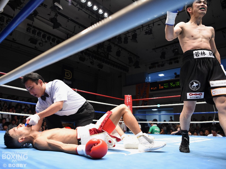 控室に戻ってきた若林は、「最後に決めたパンチは練習通りに出たパンチで手応えはなかった。これまでサウスポーは苦手だったが、スパーリングを重ねたおかげで違和感がなかった。倒した瞬間、レフェリーが止めると思った」と会心の勝利に頬を緩ませた。