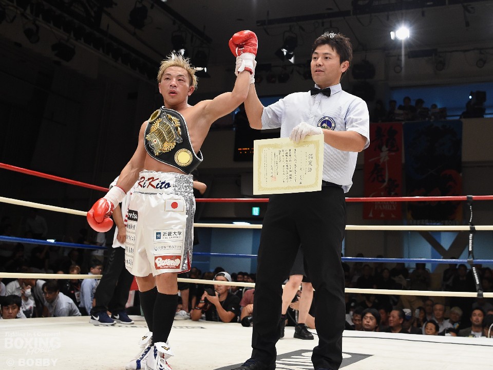 次戦は12月に名古屋で同級1位の矢吹正道(緑)との日本タイトル挑戦者決定戦を行う芝は、「必ず勝ってタイトル戦にコマを進めたい」と拳を握った。