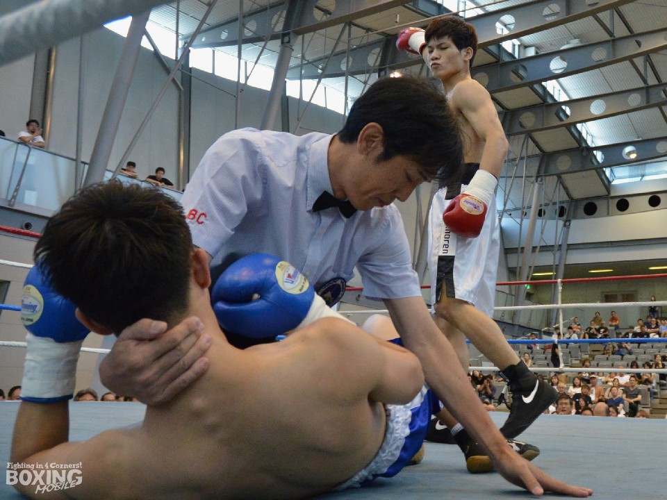 中日本新人王と西部日本新人王による地区対抗戦が15日、愛知・刈谷市あいおいホールで行われた。この日は沖縄のジム所属の選手が3選手出場し、いずれもKO勝ちで次戦にコマを進めた。