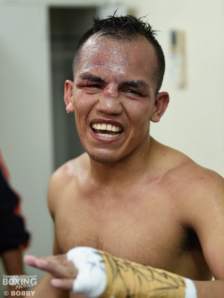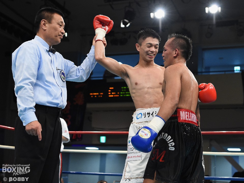 17年12月の田口良一(ワタナベ)、18年10月の拳四朗(BMB)に続く敗戦と、日本で3連敗を喫したメリンドだが、試合後の控室では「ちょっとストップは早いと思うが、無敗の選手と元世界王者の良い試合ができた。中谷は確かに良い選手だが、世界に行くにはまだ経験が足りない。もう2〜3戦やったほうがいい」と強がりに近い助言。それでも最後は「あれだけ背が高いと誰でもやりにくい。連打も速くて捌き切れなかった」と、その実力を認めた。