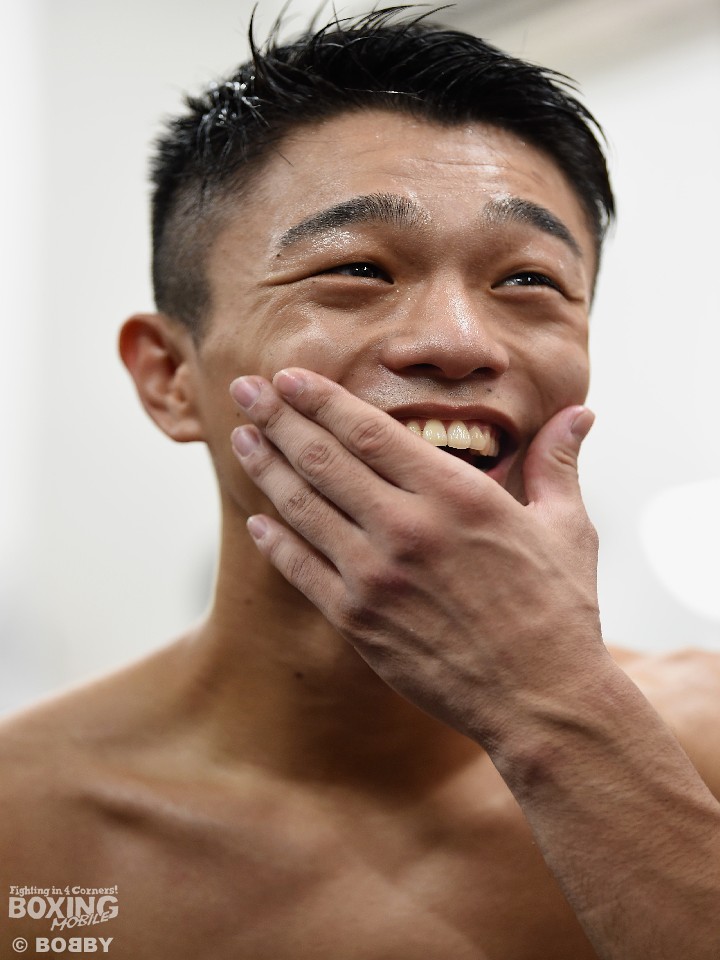 顔にかすり傷ひとつなく会見に臨んだ中谷は、「これだけパンチが当たれば効いてくるだろうと思った。顔面だけでなくボディや胸を打つことを意識した。きれいには倒せなかったが、パンチをまとめることができたので良かった」。「ジャブを置きに行ってしまったのが反省点。満足するのは世界王者になってからしたい」と冷静に振り返った。
