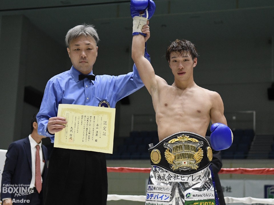 試合後、高山は「プロは甘くなかった。今日がデビュー戦だと思って臨んだが、大橋選手も強く、本当に勝てて良かった。プロの厳しさを知れたので良かったです。これからも小口トレーナーと一緒に頑張っていきます」と、初戴冠に安堵の表情を見せた。