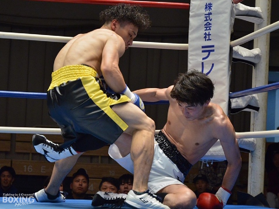 第11試合スーパーフェザー級4回戦では松崎慎吾(26=ワタナベ)と五十嵐友弘(25=ワールドスポーツ)が対戦。立ち上がりから五十嵐がトリッキーな動きで翻弄すると、右フックを決めてダウンを先取。ペースを握った五十嵐は力強い攻撃で松崎を攻め立てストップ勝ちした。