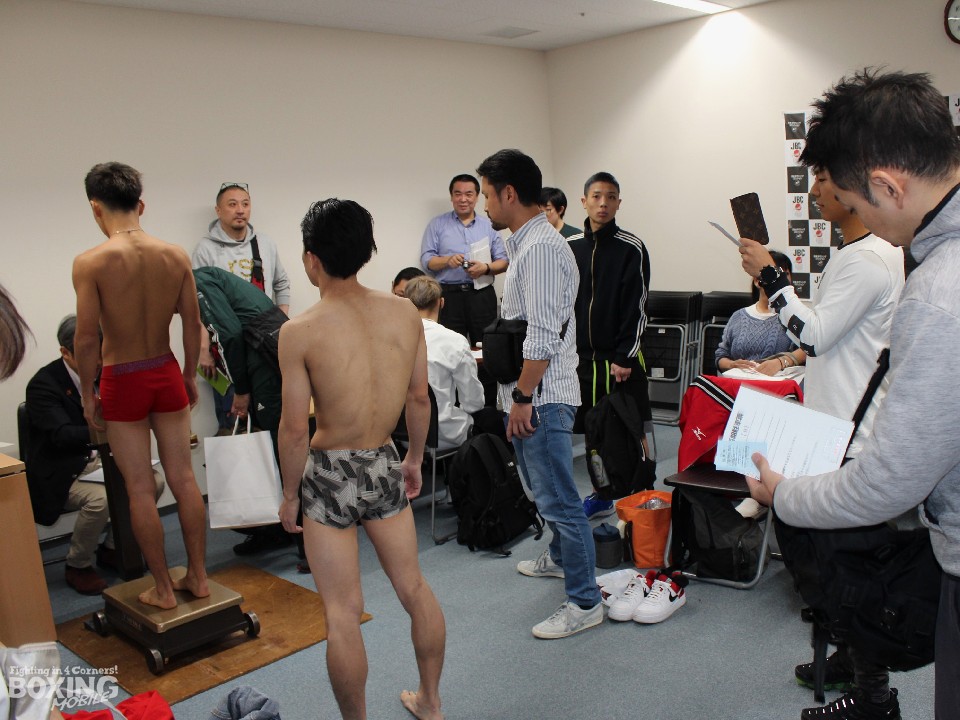 「第76回東日本新人王決勝戦」の前日計量が2日に都内の日本ボクシングコミッション本部事務局で行われ、厳しい予選を勝ち抜いた選手たちが計量に臨んだ。なお、ライト級は佐々木尽(18=八王子中屋)が体調不良のため棄権となり、齋藤眞之助(24=石川ジム立川)が東日本新人王に決定した。
