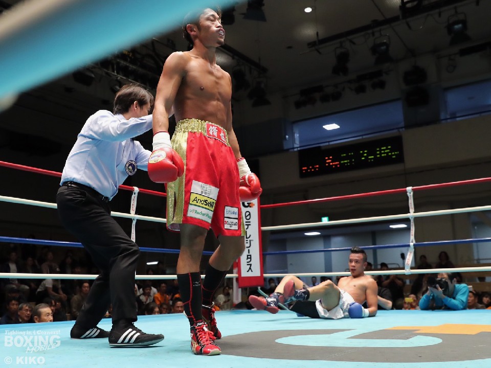 正木は前日計量で800gオーバーしたカントを睨みつけると、キレのある左ジャブで距離をコントロールし、右ストレート、左ボディを浴びせていく。カントも時折、大振りの右を繰り出すが、正木は被弾を緩さずにダメージを与え、3回に左ボディでダウンを奪った。倒れた際に足をひねったカントはまともに立ち上がることができずにカウントアウト。初のメインで3回KO勝ちを飾った正木は、試合後の勝利者インタビューで「来年はタイトルに近づけるよう頑張る。一刻も早くベルトを巻きたい」と決意した。