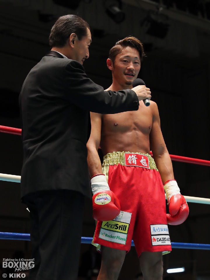 控室に戻った正木は記者に囲まれ、「1ラウンド目から動きがよく調子が良かった。これも前重心を後ろよりにしたおかげ。以前より被弾が少なくなったし、相手のパンチも見えるようになった」と成長を実感。「カントの計量オーバーには試合が中止になるかと思いムカついた。なんぼオーバーしてもいいから試合だけはやってくれと願った」と、グローブタッチで相手を睨みつけた理由を明かした。