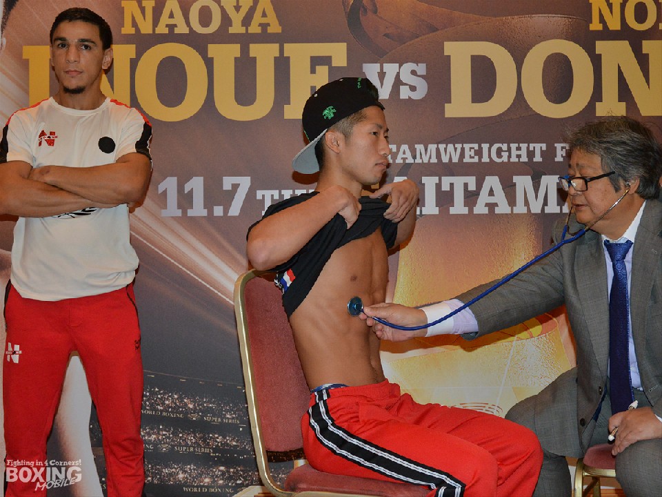コミッションドクターより異常なしと診断された井上は、初対面したウバーリについて「思ったより身長が低く、やりやすいと感じた。(リーチでは7cm劣ったが)前回もリーチの長い選手とやっているので大丈夫。数字は参考にしない。オーラもそこまで感じなかった」と印象を語り、「あとはやるだけ、正規王者になるための試合なので、挑戦者のつもりですべてを出して戦う」と決意した。